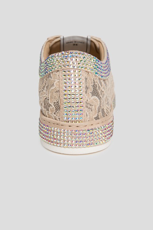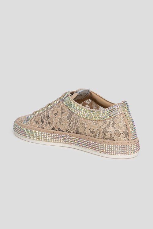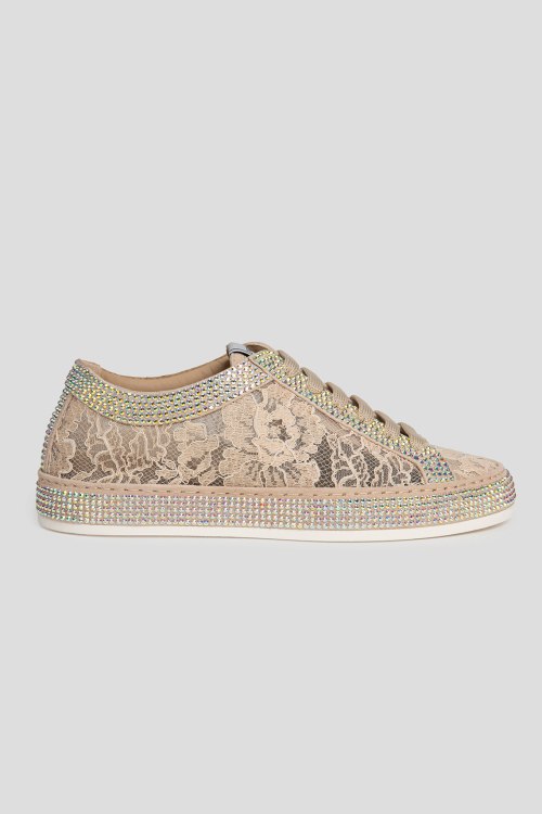 Детали: Женские бежевые кеды из натуральной кожи от Le Silla (Ле Силла). Закругленный носок, спереди классическая шнуровка, кружевной дизайн, патч-лого, кожаная стелька с логотипом бренда, модель декорирована кристаллами