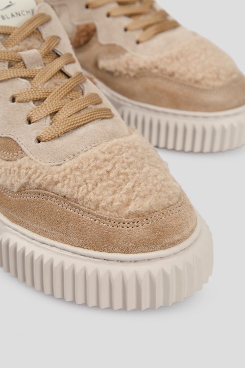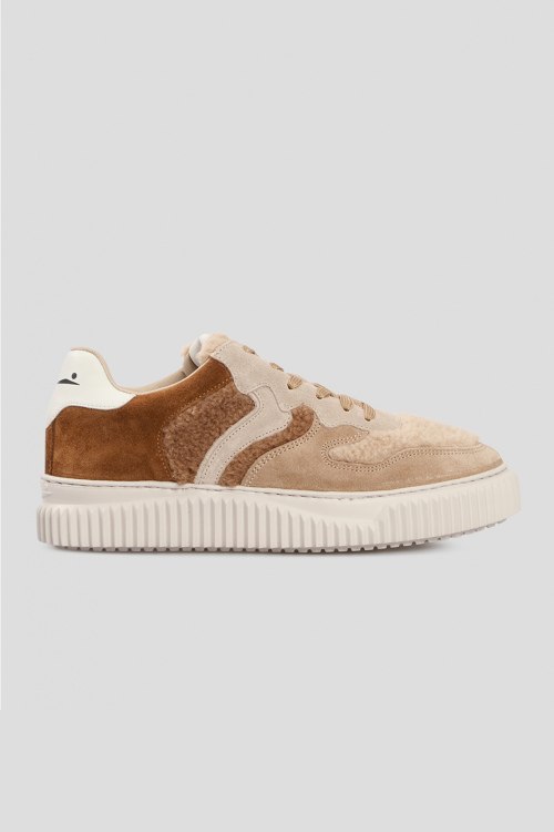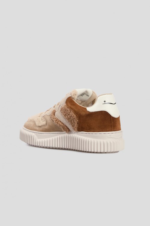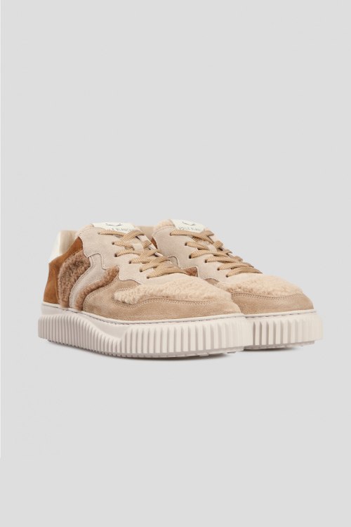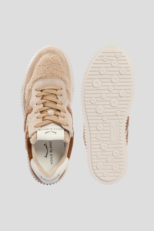 Детали: Женские бежево-коричневые замшевые кеды от Voile Blanche (Вуаль Бланш). Комбинация цветов и материалов, меховая отделка, логотип на язычке, классическая шнуровка, закругленный носок. Высота подошвы: 3,5 см