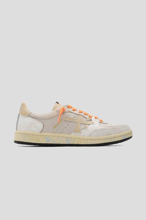 Детали: Женские бежевые кеды Bskt Clay из натуральной замши от Premiata (Премиата). Закругленный носок, спереди классическая шнуровка контрастного цвета, брендированные нашивки, перфорированный дизайн, резиновая подошва