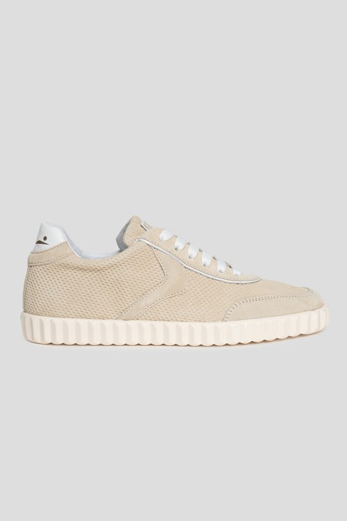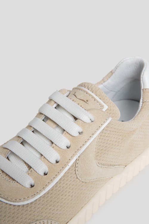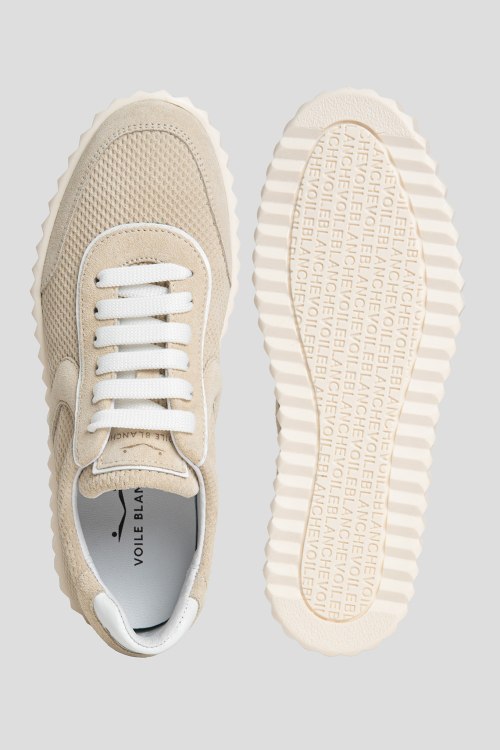 Детали: Женские бежевые замшевые кеды от Voile Blanche (Вуаль Бланш). Логотип на язычке, классическая шнуровка, закругленный носок, рельефная подошва
