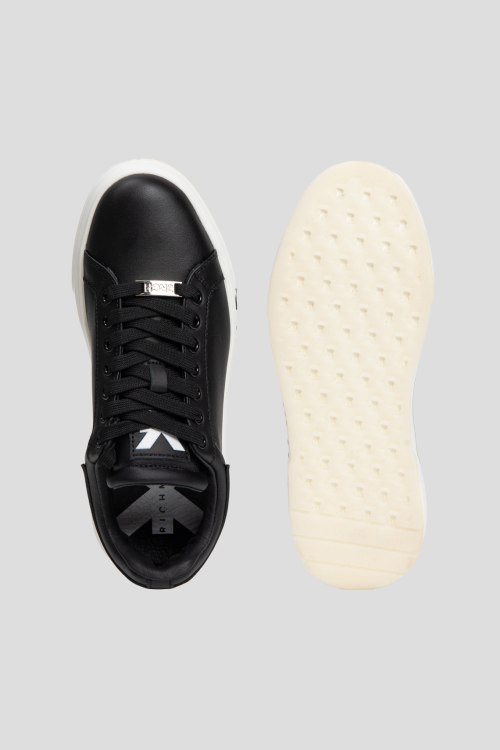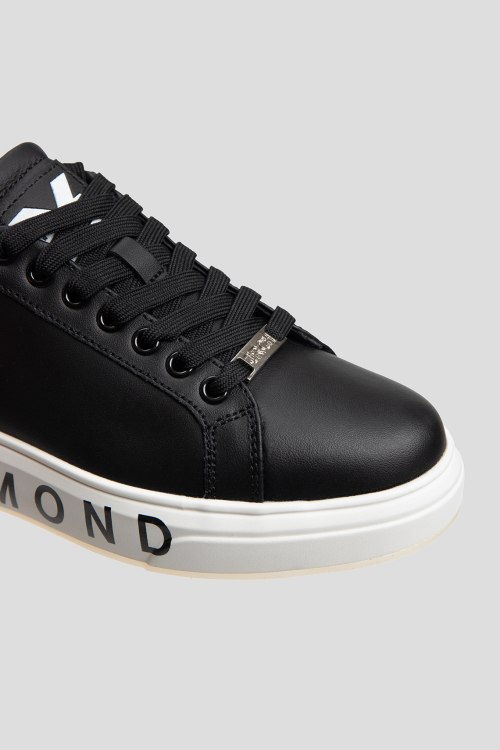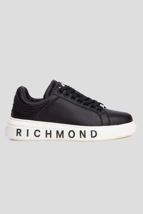 Детали: Женские черные кеды из экокожи от John Richmond (Джон Ричмонд). Модель из гладкой кожи, логотип на язычке и на подошве, классическая шнуровка, закругленный носок, белая подошва