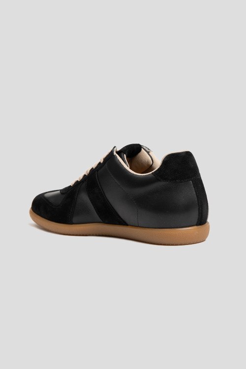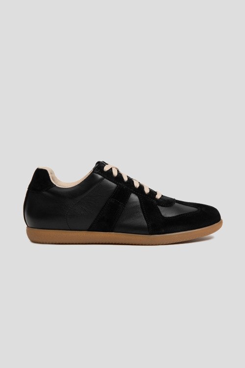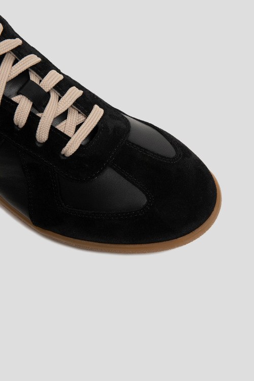 Детали: Женские черные кеды из натуральной кожи и замши от L'Estrosa (Лестроса). Комбинированный дизайн, закругленный носок, спереди классическая шнуровка контрастного цвета, резиновая подошва