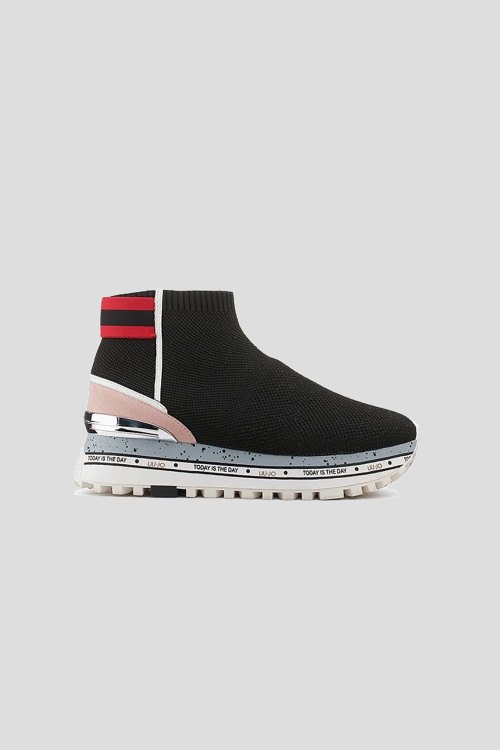 Детали: Женские черные текстильные хайтопы Maxi Alexa 4 Elastic Sock от Liu Jo (Лиу Джо). Носочный дизайн, контрастные вставки, закругленный носок, массивная подошва