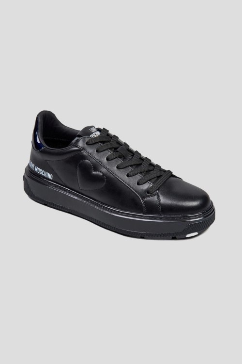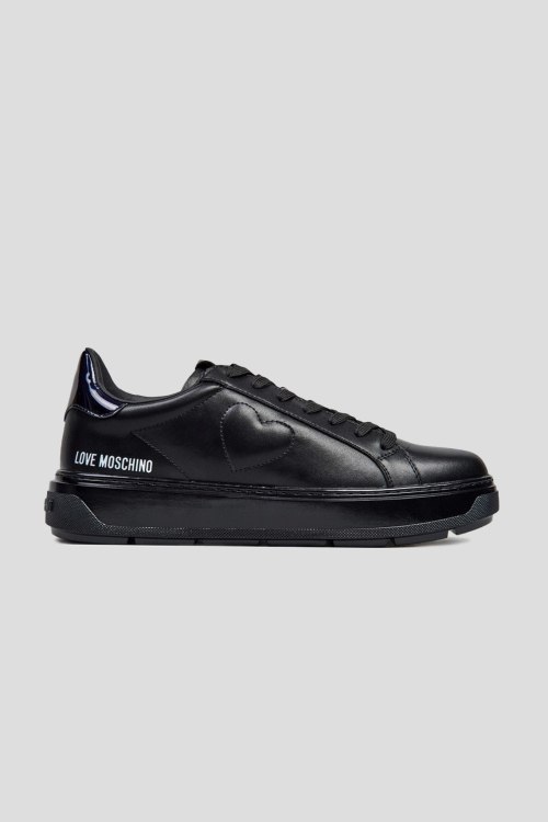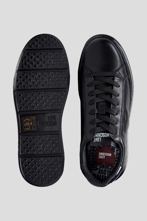 Детали: Женские черные кожаные кеды от Love Moschino (Лав Москино). Модель из гладкой кожи, логотип и сердечко сбоку, классическая шнуровка, закругленный носок. Подошва: 3.5 см
