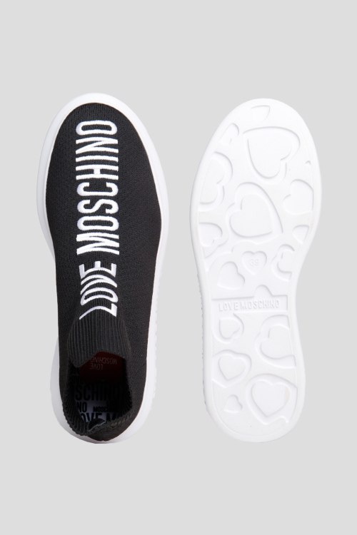 Детали: Женские черные кеды из текстиля от Love Moschino (Лав Москино). Закругленный носок, завышенное голенище, уплотненный задник, резиновая подошва белого цвета, носочный дизайн без застежки, декорировано спереди вышитым логотипом бренда