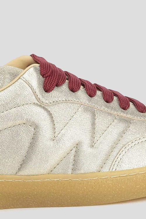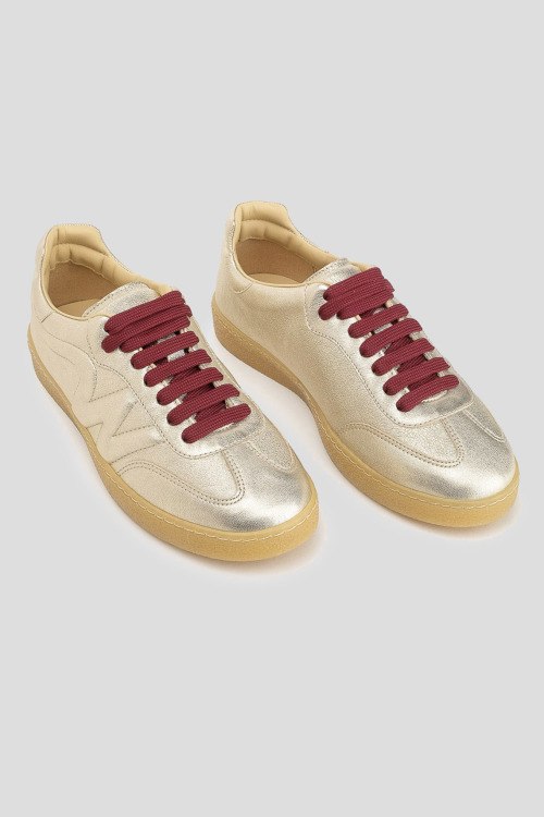 Детали: Женские золотистые кеды из натуральной кожи от Max Mara Weekend (Макс Мара Викенд). Закругленный носок, спереди шнуровка бордового цвета, логотип бренда