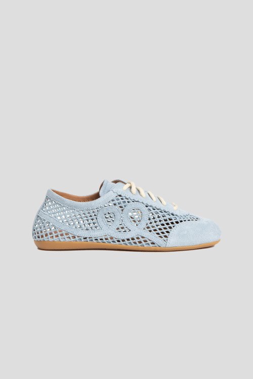 Детали: Женские голубые кеды из натуральной замши от L'Estrosa (Лестроса). Закругленный носок, спереди классическая шнуровка, сетчатые вставки, плоская подошва