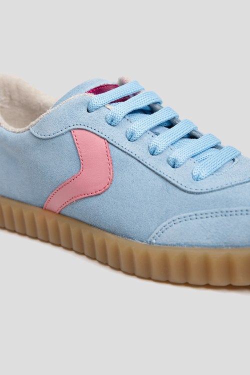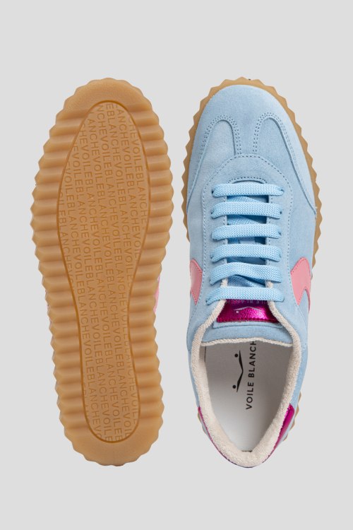 Детали: Женские голубые кеды из кожи и замши от Voile Blanche (Вуаль Бланш). Закругленный носок, комбинация материалов, спереди шнуровка, патч-лого. рельефная подошва