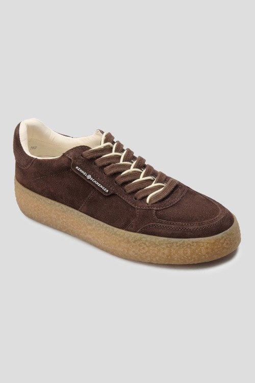 Детали: Женские темно-коричневые замшевые кеды от Kennel & Schmenger (Кеннел энд Шменгер). Нашивка с логотипом сбоку, классическая шнуровка, закругленный носок, кожаная стелька