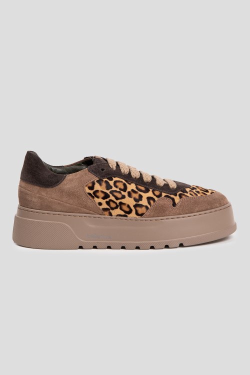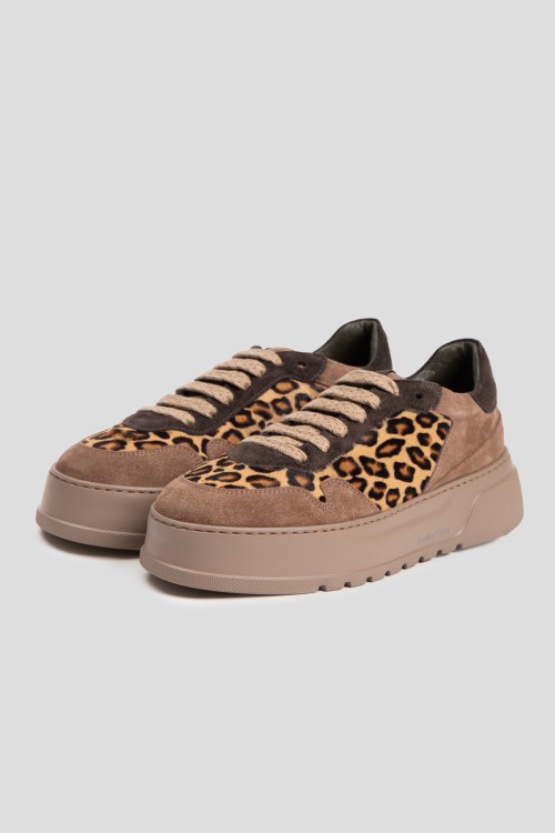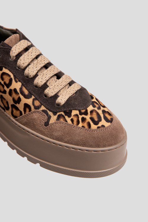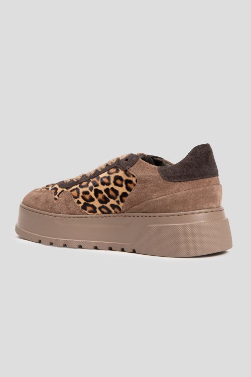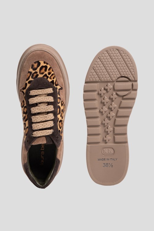 Детали: Женские замшевые кеды цвета кэмел от Laura Bellariva (Лаура Белларива). Леопардовая вставка из меха пони, классическая шнуровка, закругленный носок, кожаная стелька. Подошва: 5 см