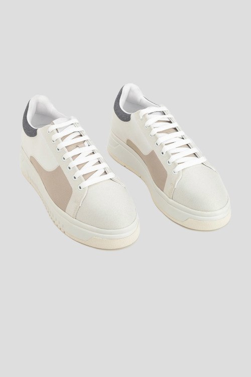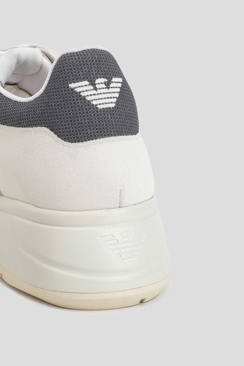 Детали: Женские молочные кеды из полиэстера от Emporio Armani (Эмпорио Армани). Закругленный носок, классическая шнуровка спереди, высокая подошва, контрастный задник с логотипом бренда, патч-лого на язычке