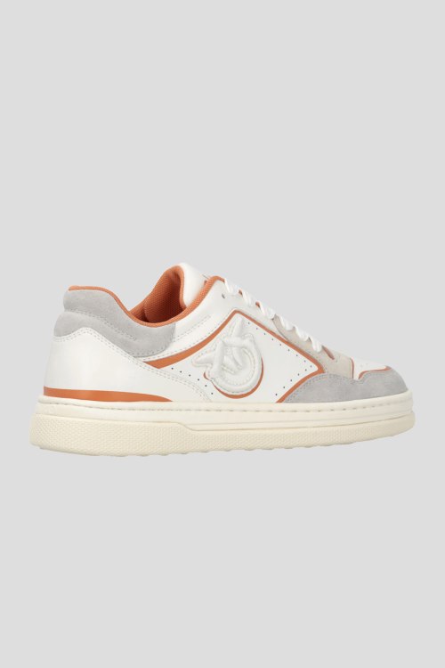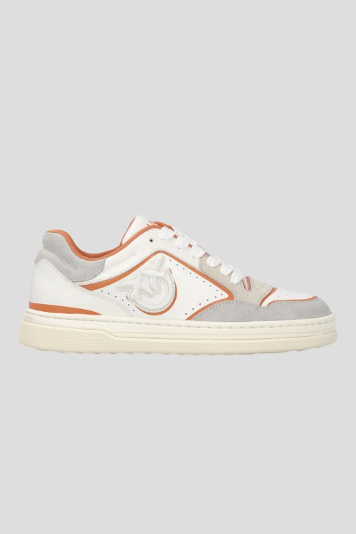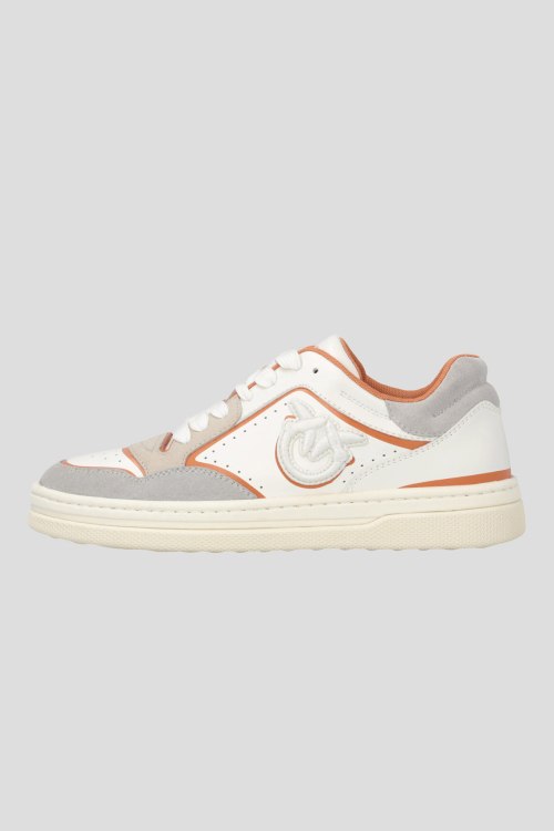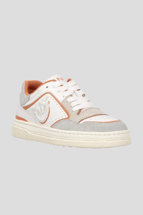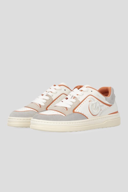 Детали: Женские белые кеды Mandy 08 из натуральной кожи от Pinko (Пинко). Дизайн в виде комбинации цветов и материалов, закругленный носок, спереди классическая шнуровка, перфорация, вышитый логотип бренда сбоку, резиновая подошва