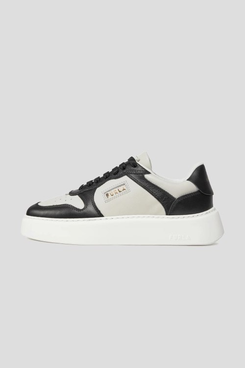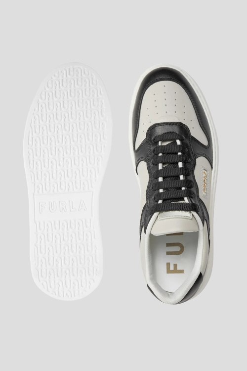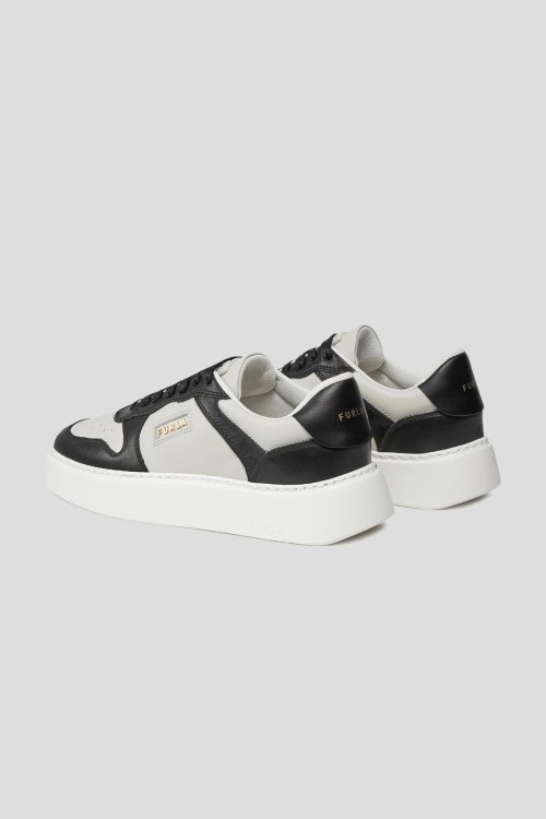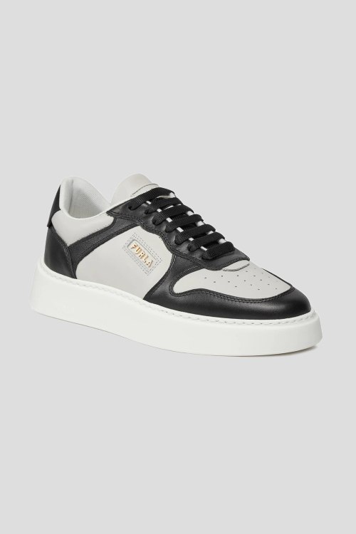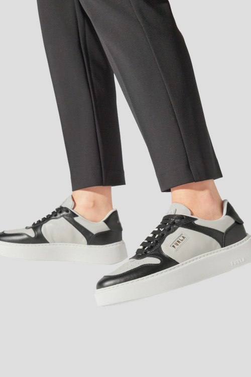 Детали: Женские серо-черные кожаные кеды Furla Sport от Furla (Фурла). Модель из гладкой кожи, дизайн колор-блок, логотип сбоку и на язычке, классическая шнуровка, закругленный носок, белая подошва