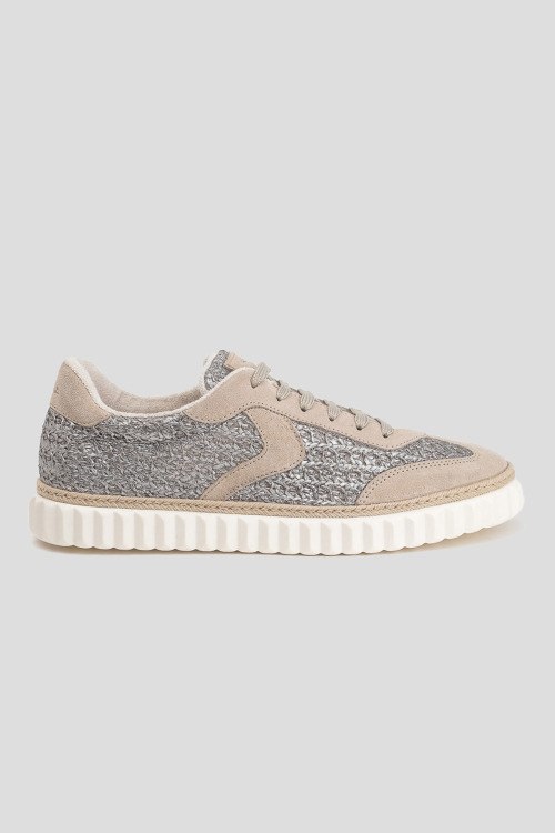 Детали: Женские серо-бежевые кеды из текстиля и замши от Voile Blanche (Вуаль Бланш). Дизайн в виде комбинации цветов и материалов, плетенный дизайн, закругленный носок, спереди классическая шнуровка, патч-лого, резиновая подошва белого цвета, утепленная модель