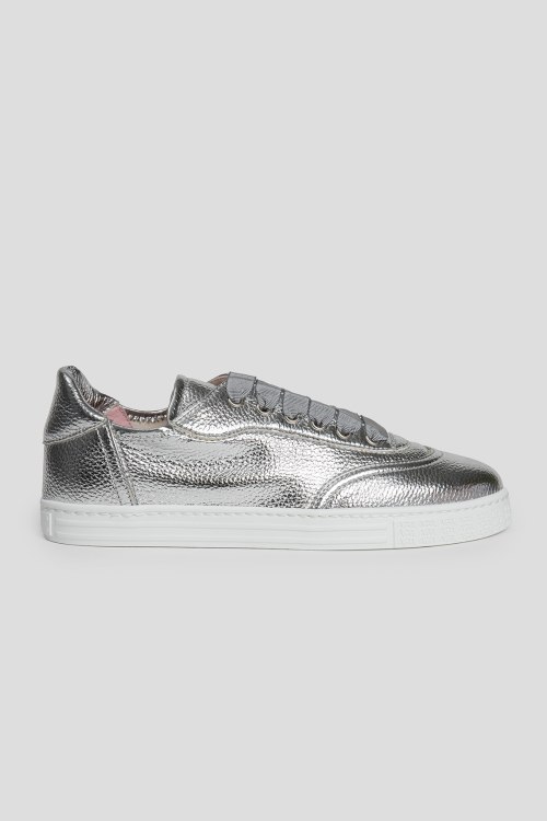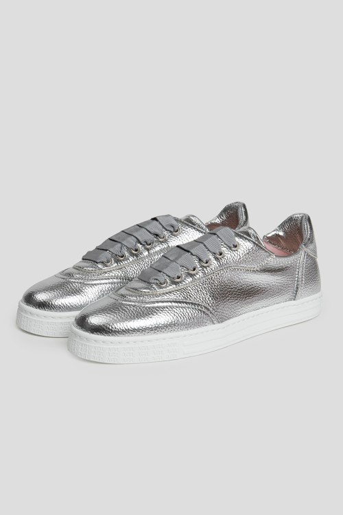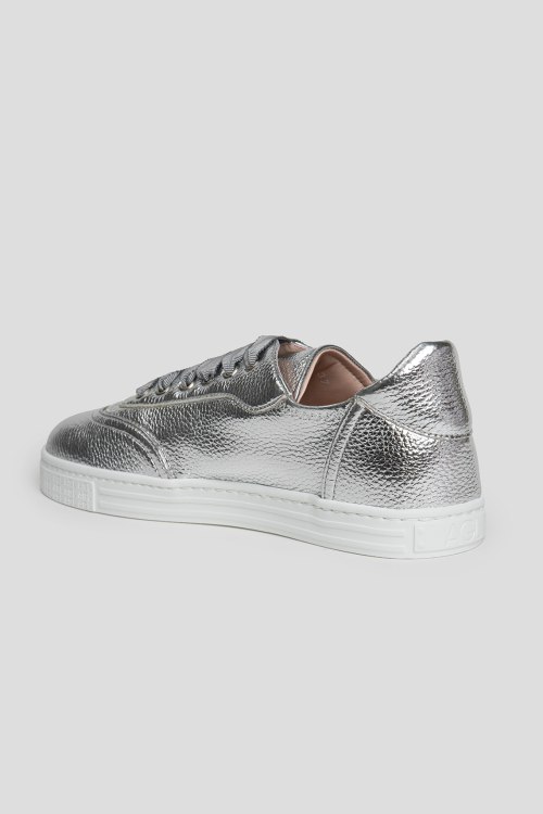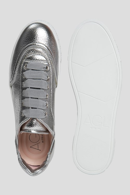 Детали: Женские серебристые кожаные кеды от AGL (Аттилио Джусти Леомбруни). Модель из зернистой кожи, классическая шнуровка в тон изделия, закругленный носок, стелька с логотипом, белая подошва