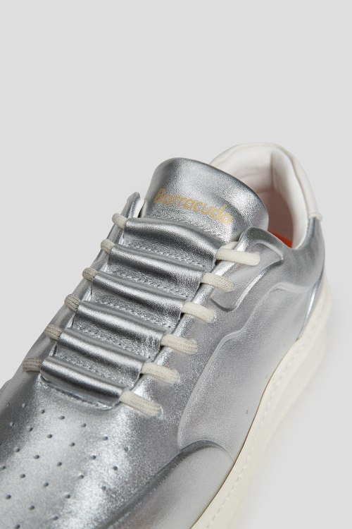 Детали: Женские серебристые кожаные кеды от Barracuda (Барракуда). Модель из гладкой кожи, эффект металлик, логотип на язычке и на пятке, классическая шнуровка, закругленный носок, белая подошва
