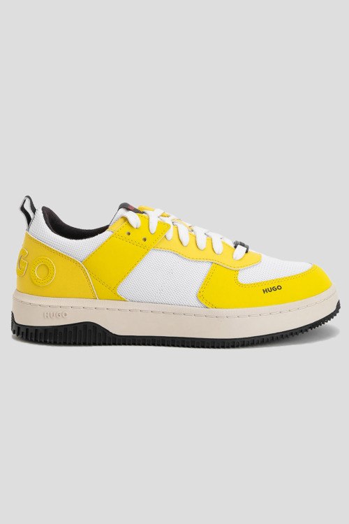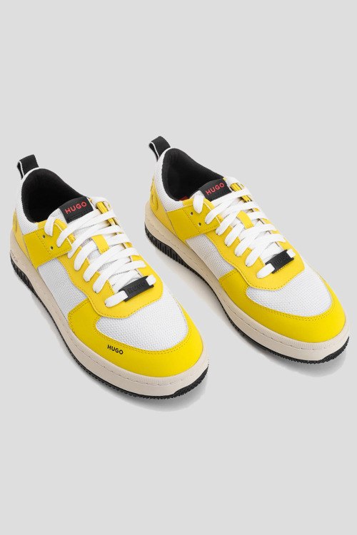 Детали: Женские желто-белые кеды Kilian из текстиля от Hugo by Hugo Boss (Хуго бай Хуго Босс). Комбинированный дизайн, закругленный носок, спереди классическая шнуровка, логотип бренда