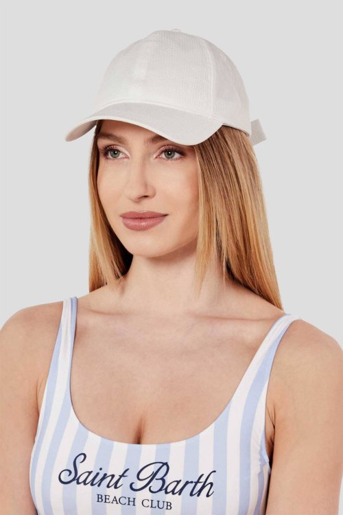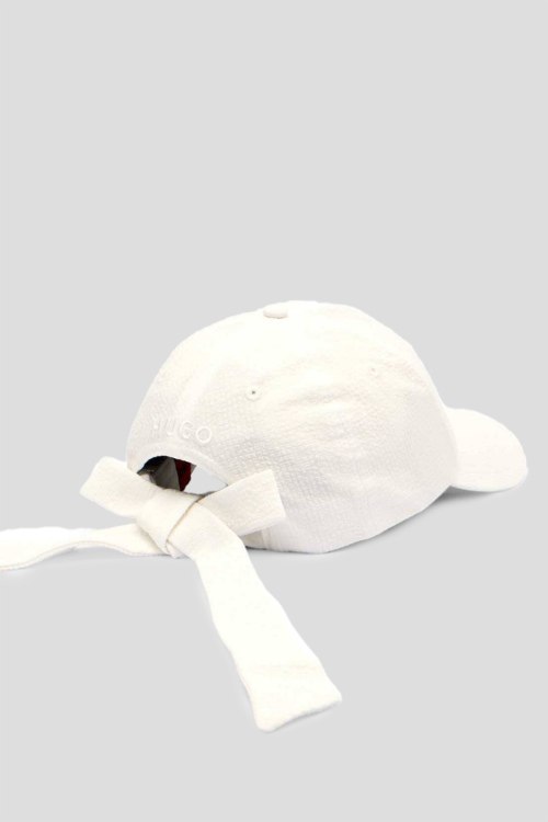 Детали: Женская белая текстильная кепка от Hugo by Hugo Boss (Хуго бай Хуго Босс). закругленный козырек, логотип сзади, регулируемый диаметр на завязках