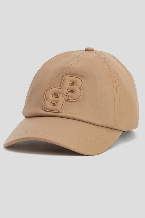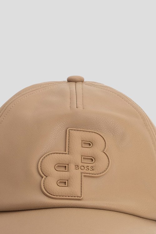 Детали: Женская бежевая кепка из экокожи Zali от Hugo Boss (Хуго Босс). Вышитый логотип, закругленный козырек, регулируемый диаметр