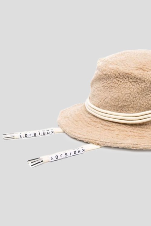 Детали: Женская бежевая хлопковая панама Puff от Khrisjoy (Крис Джой). Закругленные поля, брендированные завязки