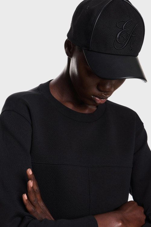 Детали: Женская черная хлопковая кепка от Emporio Armani (Эмпорио Армани). Вышитый логотип, закругленный козырек, регулируемый диаметр