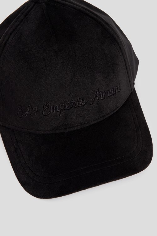 Детали: Мужская черная кепка из хлопкового микса от EA7 Emporio Armani (ЕА7 Эмпорио Армани). Закругленній носок, регулируемій размер,вішитій логотип бренда