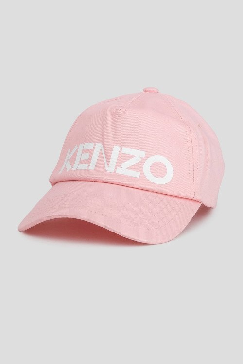 Детали: Женская розовая кепка из хлопка от Kenzo (Кензо). Закругленный козырек, регулируемый размер, принт с логотипом бренда