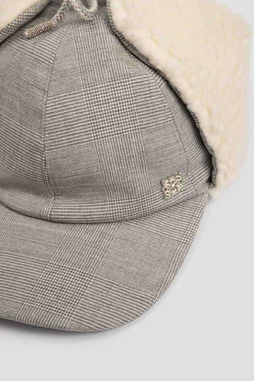 Детали: Женская серая шерстяная кепка с экомехом от Panicale Cashmere (Паникале Кашемир). Нашивка с логотипом, закругленный козырек, ушки из экомеха