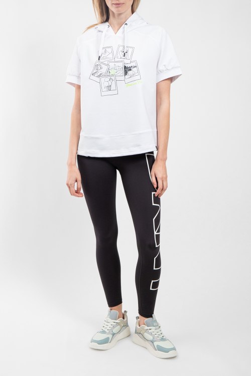 Женский белый хлопковый худи Sharon от Bogner (Богнер). Капюшон на завязках, принт на груди, короткий рукав, классическая длина.