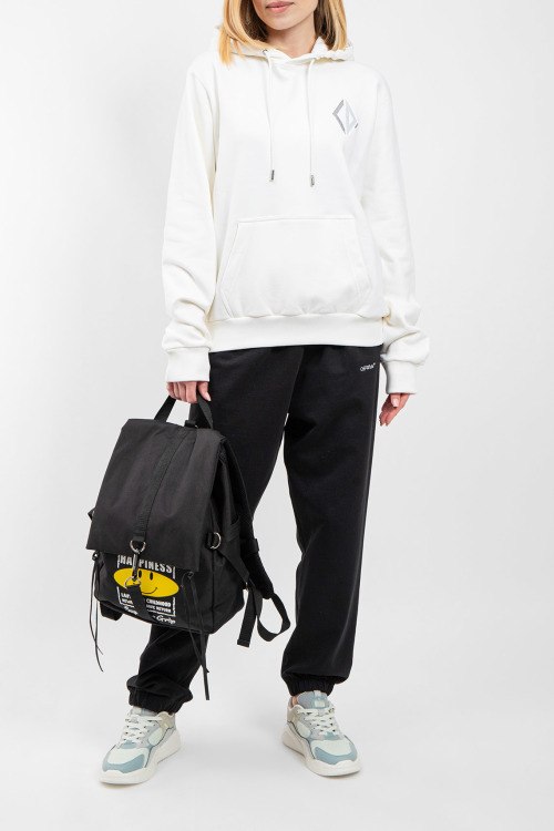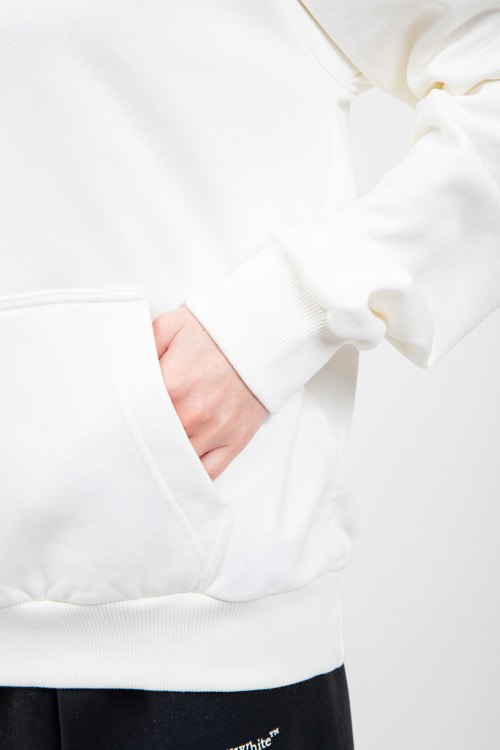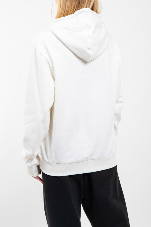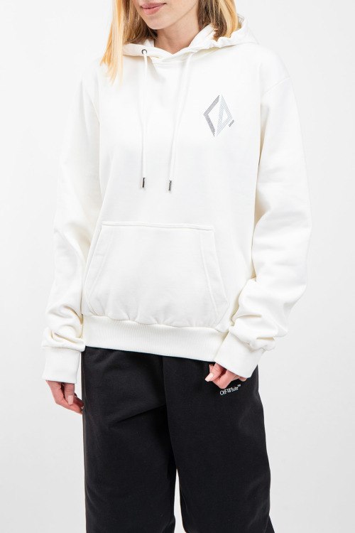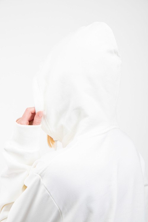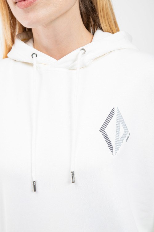 Женский белый хлопковый худи от Christian Dior (Кристиан Диор). Капюшон на завязках, принт логотипа на груди, карман-кенгуру, классическая длина, трикотажные манжеты и нижний край.