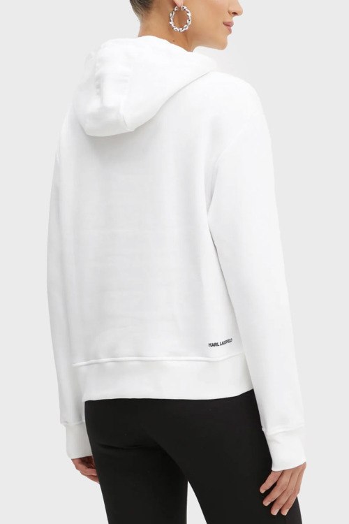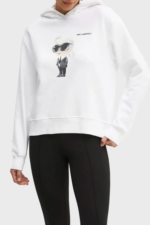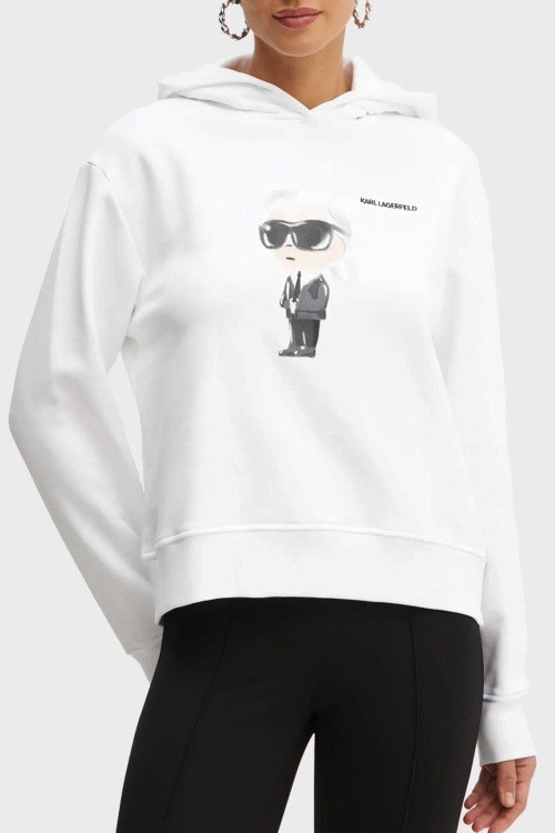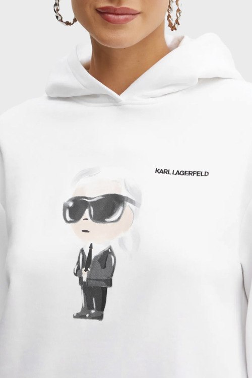 Детали: Женский белый худи Ikon Aquarelle K из хлопкового микса от Karl Lagerfeld (Карл Лагерфельд). Вшитый капюшон, классическая длина, длинные рукава, манжеты и низ изделия, графический принт с лого