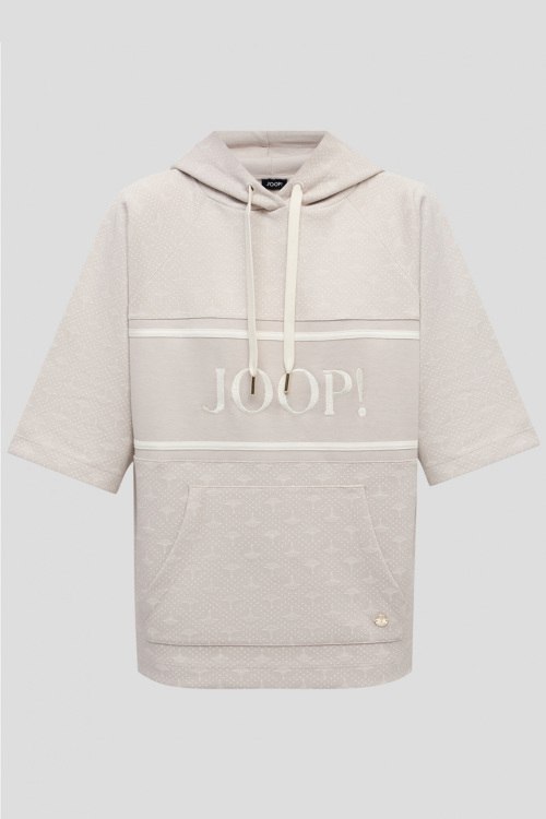 Детали: Женский бежевый хлопковый худи от Joop! (Йооп!). Капюшон на завязках, логотип на груди, карман-кенгуру, короткий рукав, классическая длина. Длина рукава: 3/4, для размера 34 - 41 см, обхват груди: для размера 34 - 112 см, обхват талии: для размера 34 - 108 см, длина изделия по среднему шву спинки от горловины: для размера 34 - 58 см