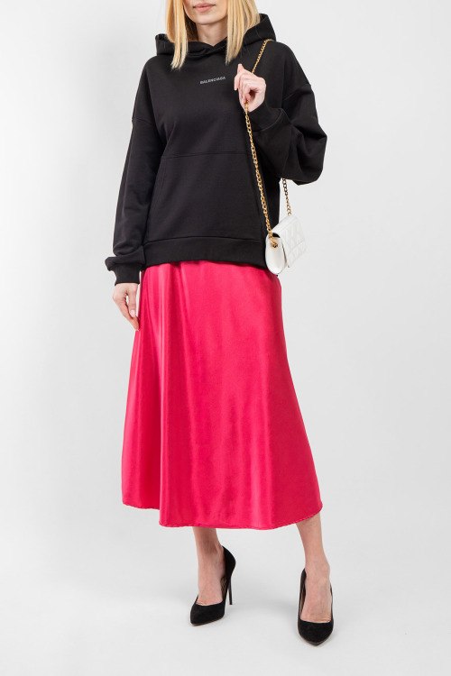 Женский черный хлопковый худи от Balenciaga (Баленсиага). Вшитый капюшон, логотип на груди и на спине, карман-кенгуру, классическая длина, трикотажные манжеты и нижний край.
