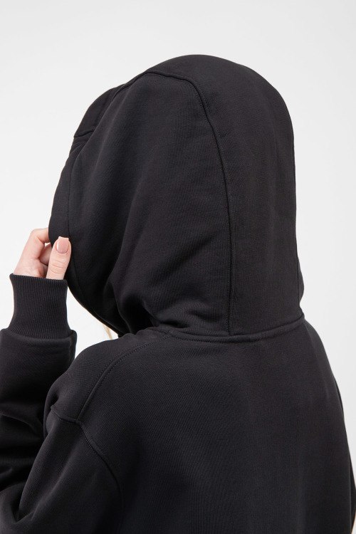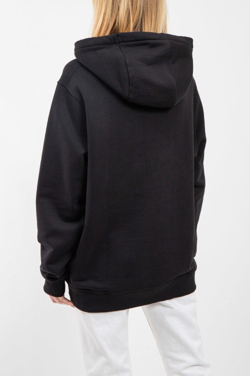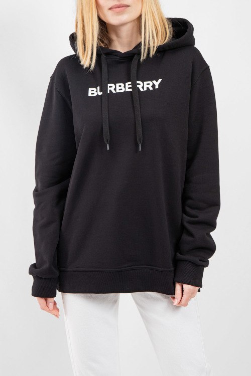 Женский черный хлопковый худи от Burberry (Бёрберри). Капюшон на завязках, логотип на груди, удлиненная длина, трикотажные манжеты и нижний край.