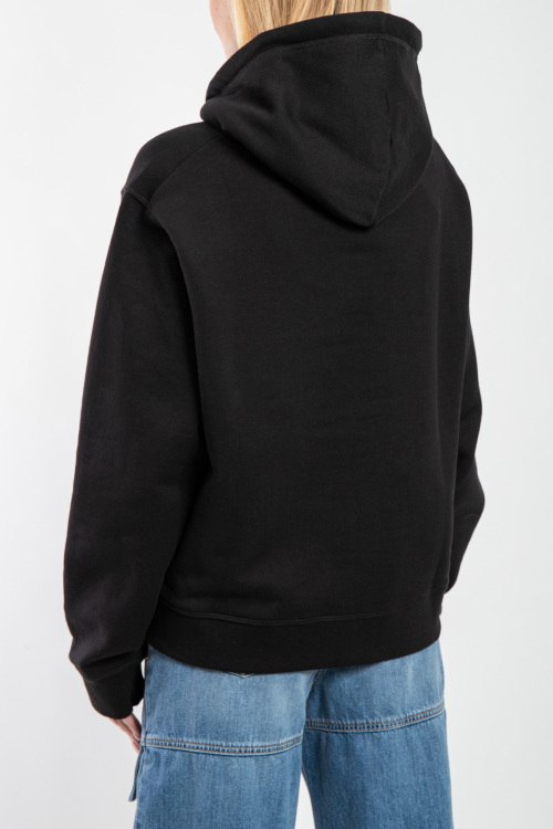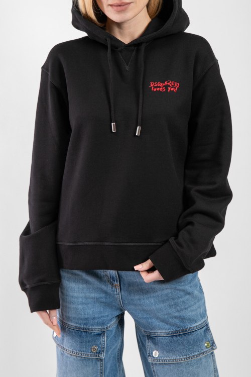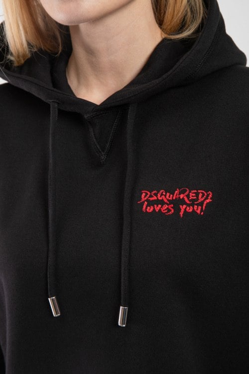 Женский черный худи из хлопка от Dsquared2 (Дискваред). Классическая длина, вшитый капюшон с кулиской, вышитый логотип бренда на груди, модель утепленная флисом.