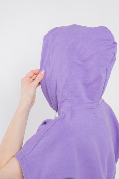 Детали: Женский фиолетовый хлопковый худи от J.B4 Just Before (Джаст Бифо). Принт с логотипом на груди, капюшон на завязках, короткий рукав-реглан, нижний край на резинке, укороченная длина