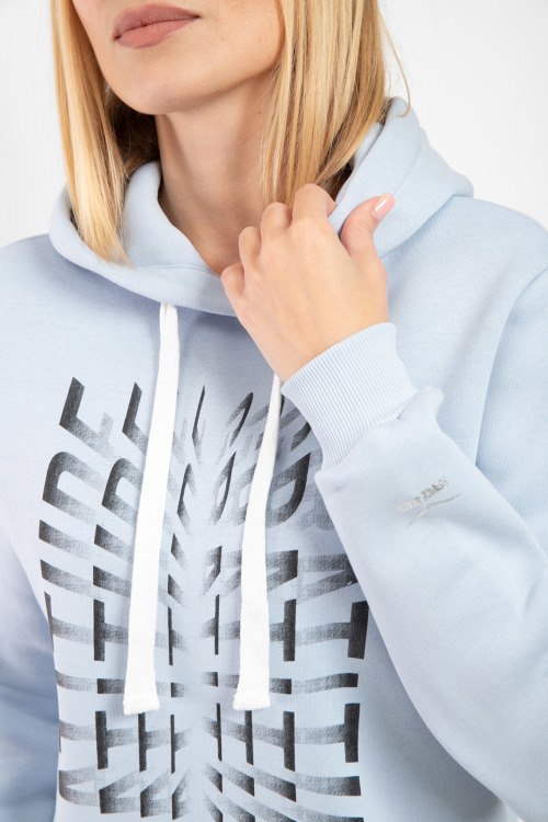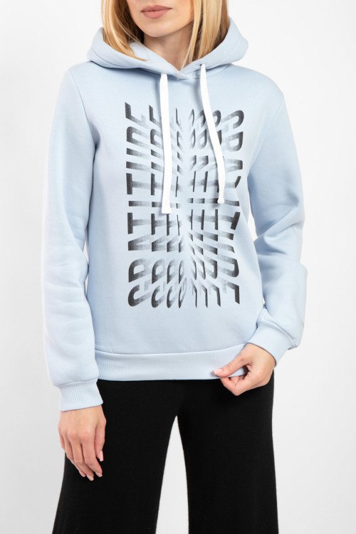 Детали: Женский голубой хлопковый худи от Venice Beach (Венис Бич). Капюшон на завязках, принт на спереди и на рукаве, классическая длина, трикотажные манжеты и нижний край