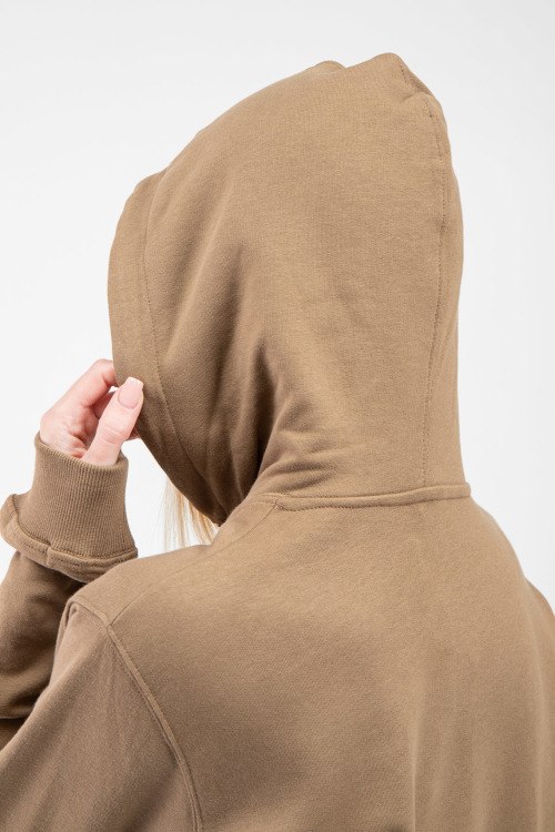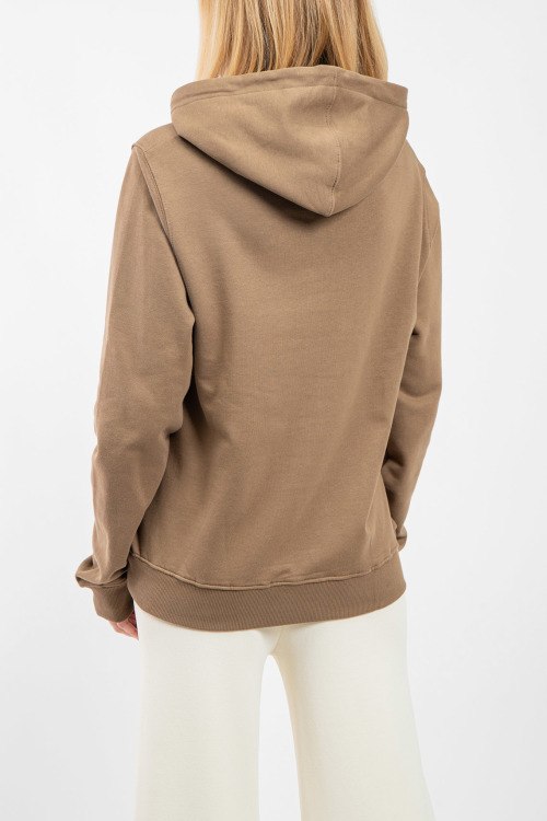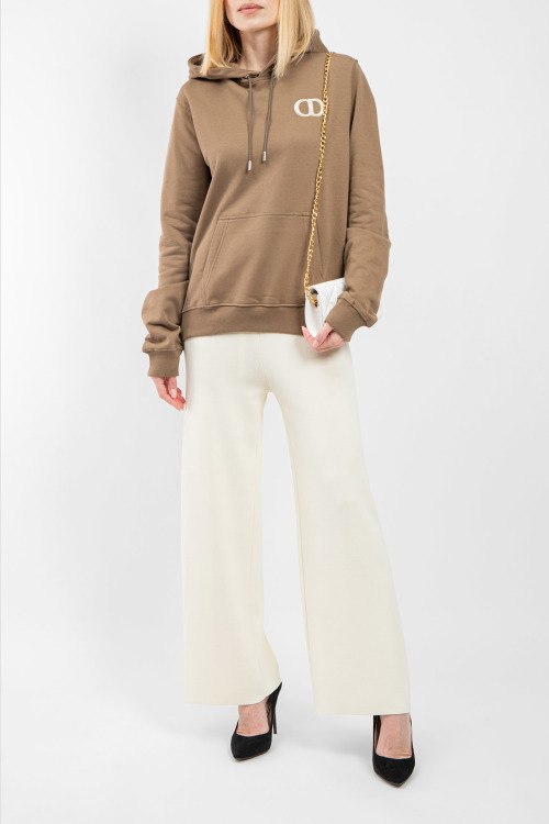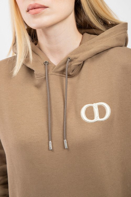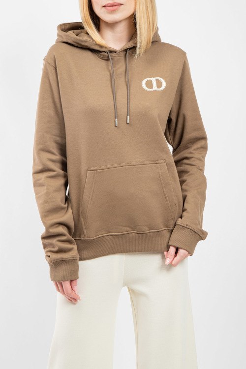 Женский коричневый хлопковый худи от Christian Dior (Кристиан Диор). Капюшон на завязках, вышитый логотип на груди, карман-кенгуру, классическая длина, трикотажные манжеты и нижний край.
