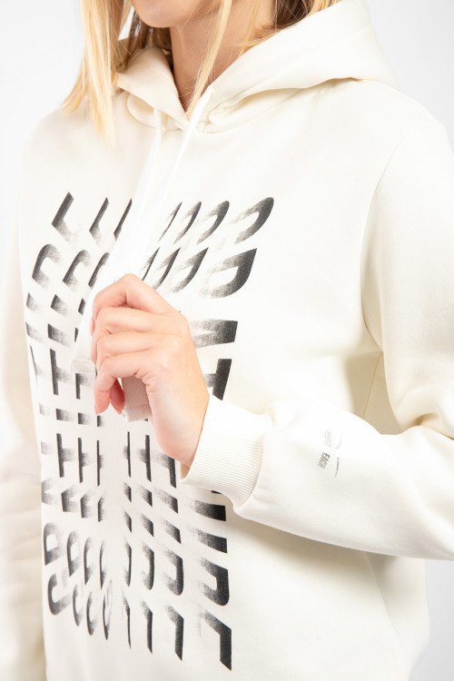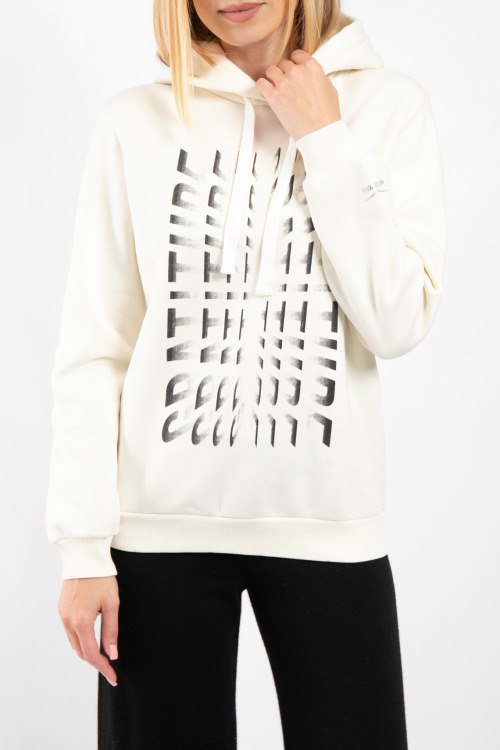 Детали: Женский хлопковый худи молочного оттенка от Venice Beach (Венис Бич). Капюшон на завязках, принт на спереди и на рукаве, классическая длина, трикотажные манжеты и нижний край