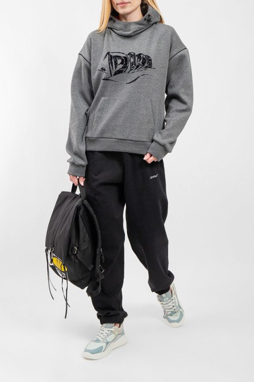 Женский серый хлопковый худи от Christian Dior (Кристиан Диор). Съемный капюшон, съемные рукава, принт логотипа на груди, карман-кенгуру, классическая длина, трикотажные манжеты и нижний край.