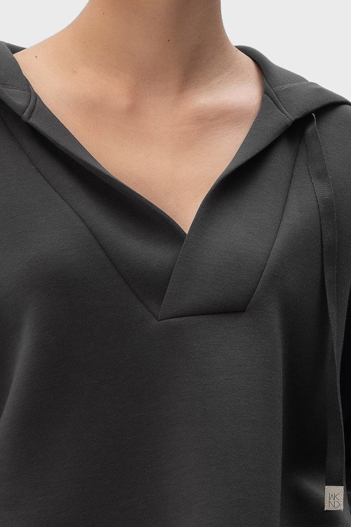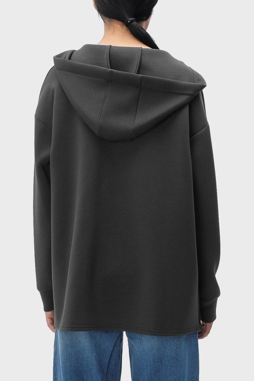 Детали: Женский темно-серый худи Giallo от Max Mara Weekend (Макс Мара Викенд). Капюшон на завязках, V-образный вырез, свободный фасон, трикотажные манжеты