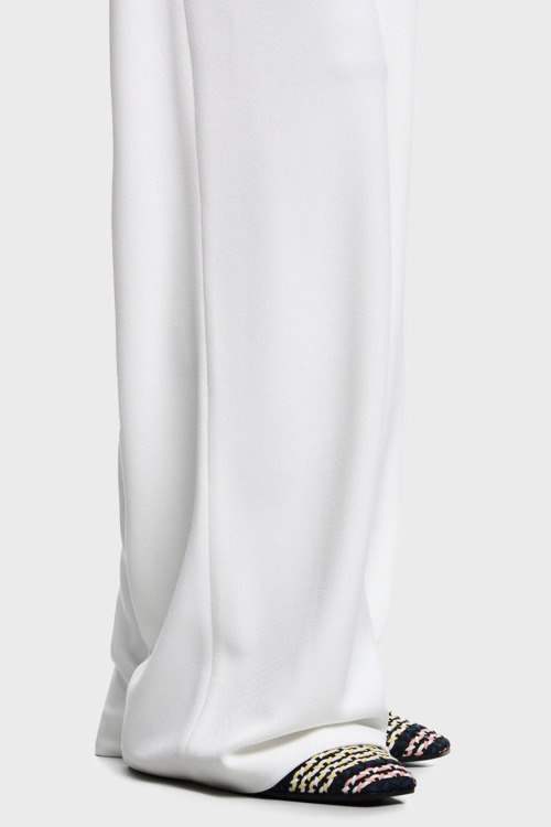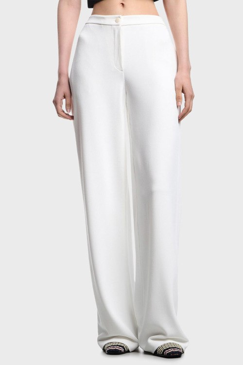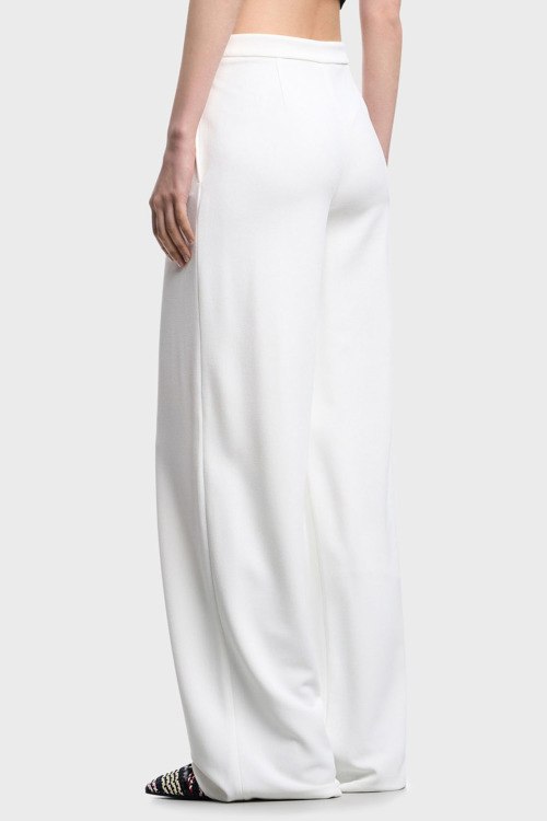 Детали: Женские белые трикотажные брюки от Emporio Armani (Эмпорио Армани). Боковые карманы, застежка на молнию и пуговицу, широкий крой, полная длина