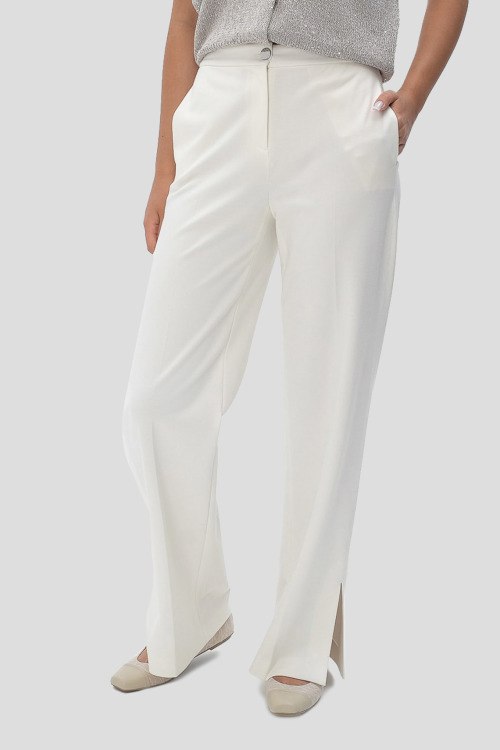 Детали: Женские белые трикотажные брюки Tilda от Hugo Boss (Хуго Босс). Дизайн со стрелками, боковые карманы, внизу разрезы по бокам, полная длина