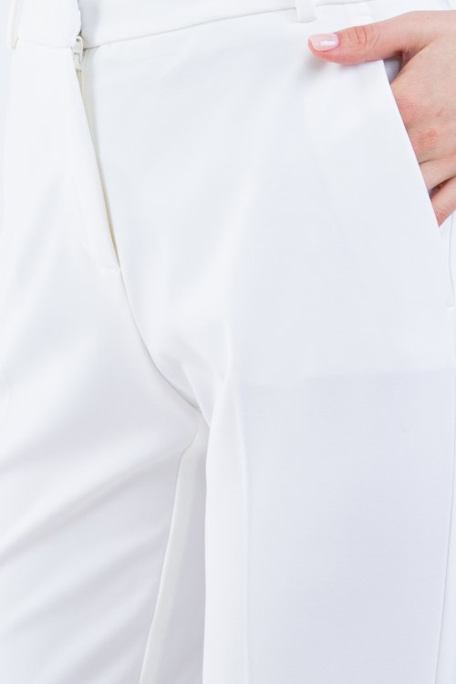 Женские белые брюки из вискозного микса от Pinko (Пинко). Модель со стрелками, боковые и задние карманы, пояс с петлями для ремня, полная длина.