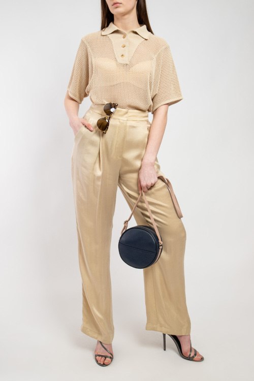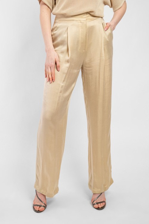 Детали: Женские бежевые брюки от MVP Wardrobe (ЭмПиВи Вордроб). Завышенная посадка, передние складки, боковые карманы, застежка на крючки и молнию, полная длина