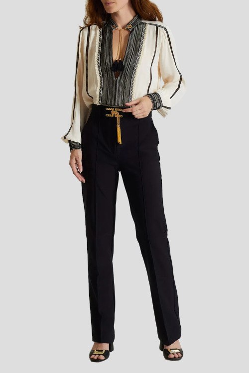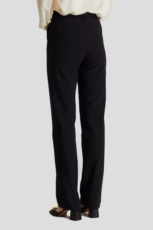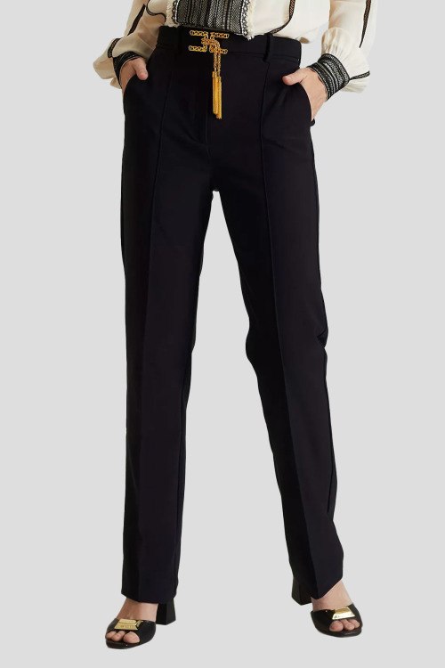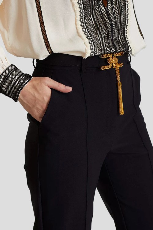 Детали: Женские черные классические брюки от Elisabetta Franchi (Елизабетта Франчи). Металлический золотистый логотип на поясе, боковые карманы, прямой фасон, полная длина