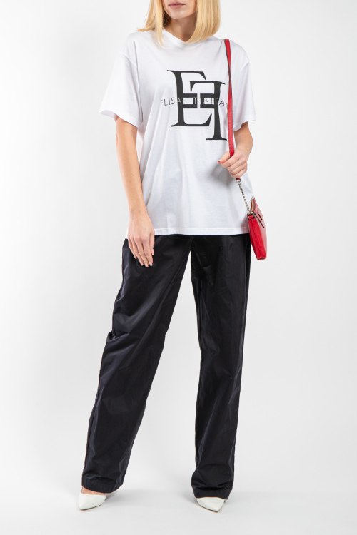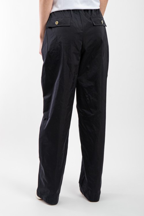 Женские черные брюки от Elisabetta Franchi (Елизабетта Франчи). Эластичный пояс, боковые и задние карманы, золотистая фурнитура, прямой крой, полная длина.