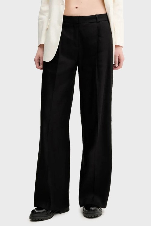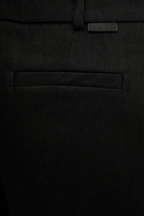 Детали: Женские черные льняные брюки Halati от Hugo by Hugo Boss (Хуго бай Хуго Босс). Дизайн со стрелками, боковые и задние карманы, пояс с петлями для ремня, полная длина