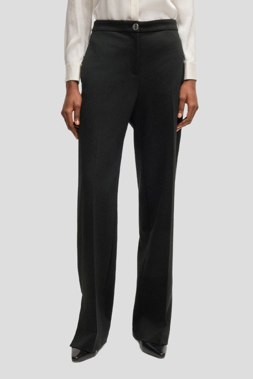 Детали: Женские черные трикотажные брюки Tilda7 от Hugo Boss (Хуго Босс). Дизайн со стрелками, боковые и задние карманы, логотип сзади, внизу с разрезами по бокам, полная длина