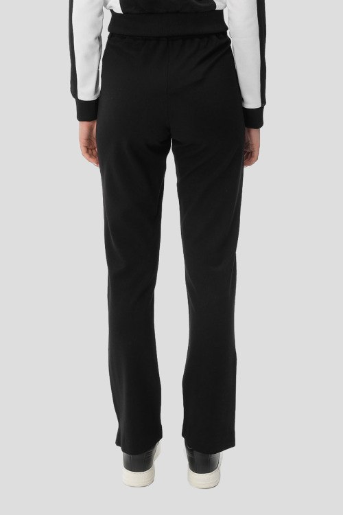Детали: Женские черные трикотажные брюки от TWINSET (Твинсет). Пояс с петлями для ремня, боковые карманы, подвеска с логотипом А, полная длина